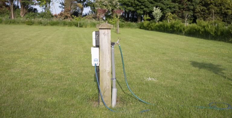 Our 1 acre site offers 5 spacious grass pitches away from the road. Each have their own electric hook up and shared water supply with 1 other pitch. Toilet, shower & laundry facilities are available on site. Up to 3 dogs are welcome on each pitch. Early checks are available from 12pm (Fees apply) or our standard check in time is from 2pm. CAMC membership required.